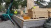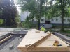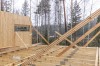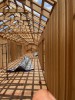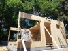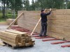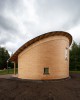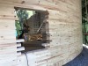 Curved WLT wall, half circle of 12m diameter. On site WLT assembly, wall and floor structures, 150 / 200mm, Scots Pine
