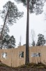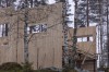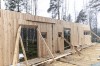 Apartment building, 2-story and with free standing kiosk and work space in conjunction. Prefabricated WLT wall and floor elements, 240 / 200mm, Scots Pine.