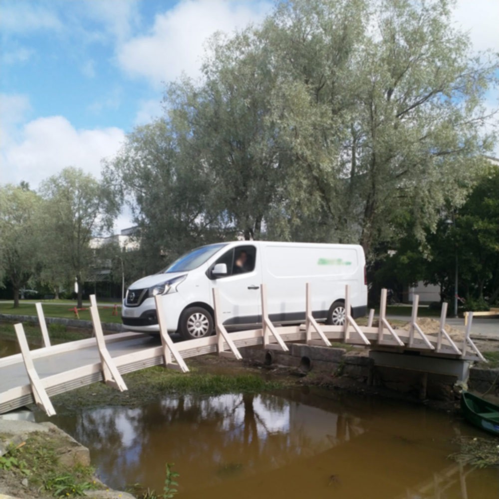 5 to 15m arch bridges for light traffic and pedestrian use. On-site WLT assembly, 150 and 200mm