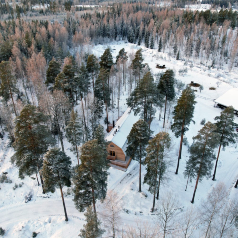 A boutique bed-and-breakfast concept - horses, forest, berry and mushroom picking. On-site WLT assembly piece-by-piece, walls 200mm, Scots Pine